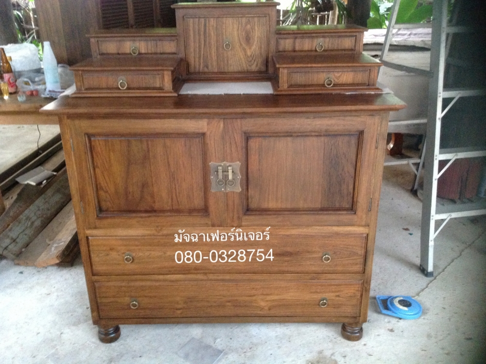 เฟอร์นิเจอร์ตู้เก็บของ(ขาชาลาเปาป มีฐานวางพระแยกได้ ทำจากไม้สักเก่า นำมาแปรรูปสวยทนทานคัดไม้ลายสวย ขนาด120*60*120(ยาว,ลึก,สูง)