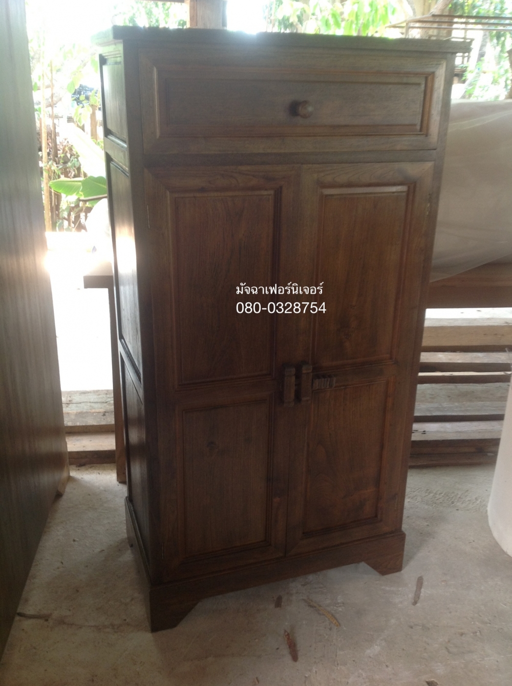เฟอร์นิเจอร์ตู้เก็บของ1ลิ้นชัก2บานเปิด ขาเฉียง ทำจากไม้สักเก่า นำมาแปรรูปสวย ทนทาน คัดไม้ลายสวย ขนาด60*35*120(ยาว,ลึก,สูง)