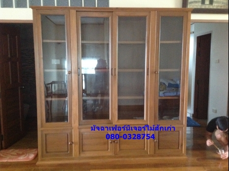 เฟอร์นิเจอร์ตู้โชว์บานสไลด์ด้านล่างบานเปิด ขนาด2200x45x200 ทำจากไม้สักเก่า