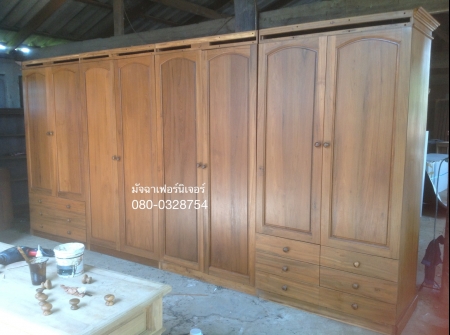เฟอร์นิเจอร์ตู้เสื้อผ้าบานเปิดแยกตู้ได้4ตู้แยกบัวขนย้ายง่ายทำจากไม้สักนำมาแปรรูปสวยทนทานคัดไม้ลายสวย ขนาด400*60*200(ยาว,ลึก,สูง)