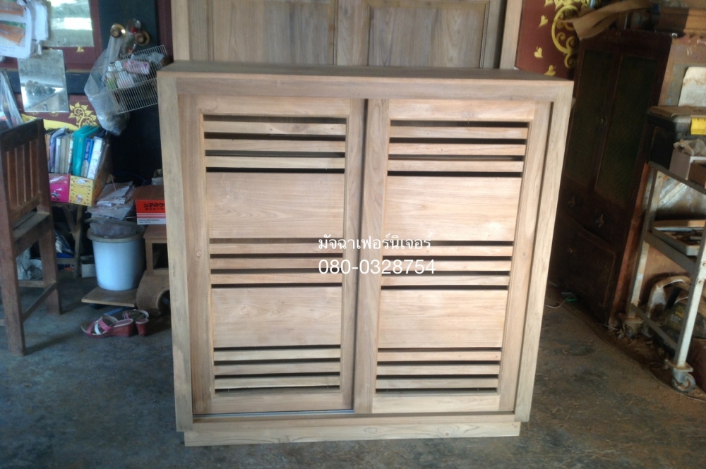 เฟอร์นิเจอร์ตู้เก็บรองเท้าบานสไลท์ ขนาด100x35x100(กว้าง,ลึก,สูง) ทำจากไม้สักเก่านำมาแปรรูป คัดไม้ลายสวย แข็งเเรงทนทาน