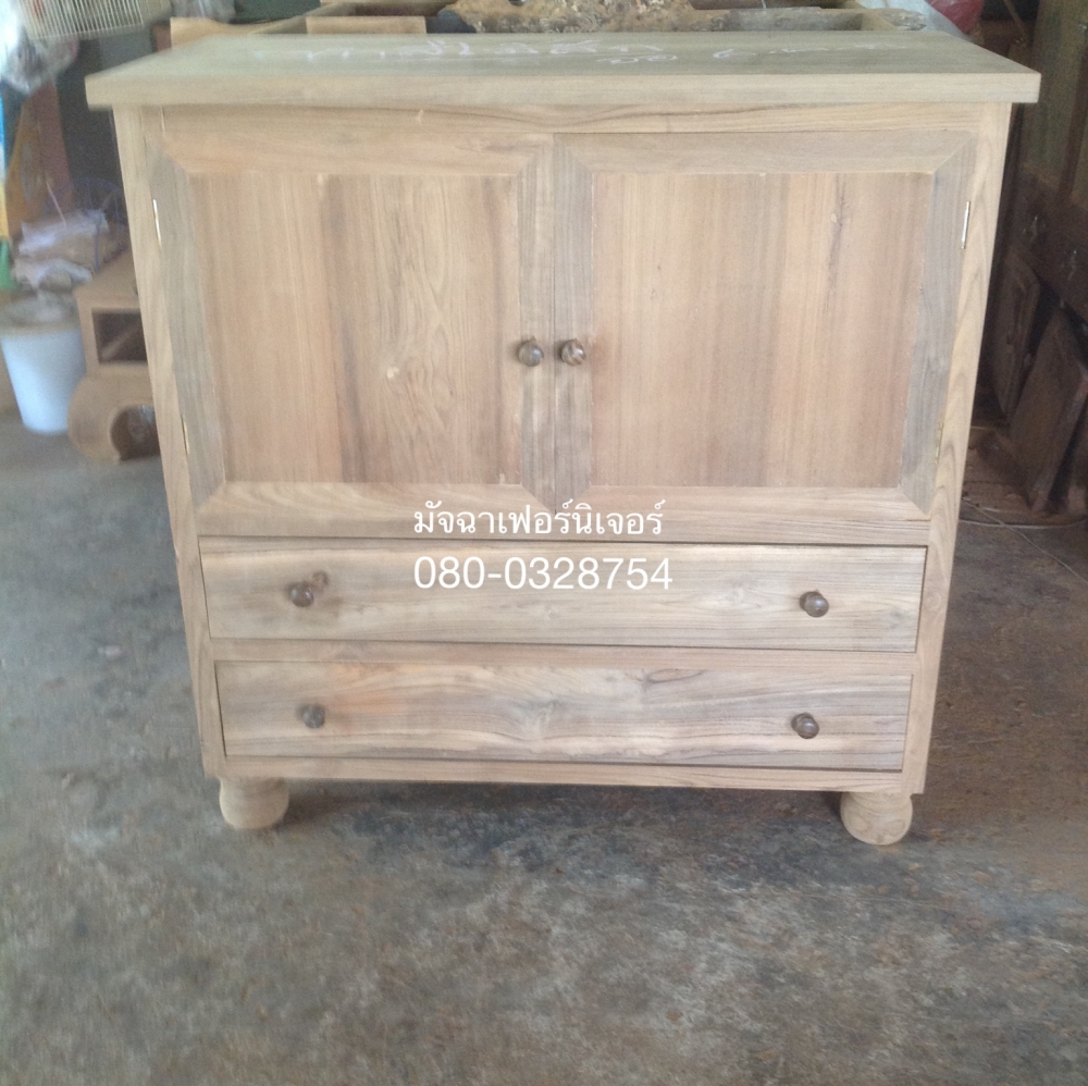 เฟอร์นิเจอร์ตู้วางทีวี(ขาชาลาเปา)2ลิ้นชัก2บานเปิดทำจากไม้สักเก่า นำมาแปรรูปสวย ทนทาน คัดไม้ลายสวย ขนาด100*40*110(ยาว,ลึก,สูง)