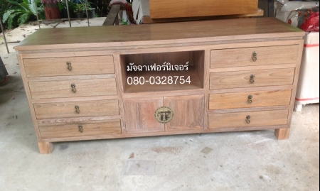 เฟอร์นิเจอร์ตู้วางทีวี ขาตรง 8ลิ้นชัก2บานเปิด แบบเรียบ ขาตรง ทำจากไม้สักเก่านำมาแปรรูปคัดลายสวย ทนทาน ขนาด150x50x65