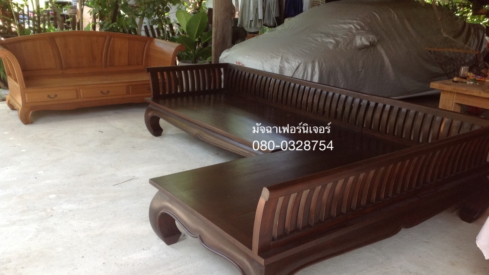 เฟอร์นิเจอร์ชุดรับแขกแบบทรงLขาคู้ชี้รอบทำสีโอ๊คเข้มแยกเป็น 2 ชิ้นได้ทำจา่กไม้สักเก่าแปรรูปไม้เก่ารายสวยแข็งแรงทนทานรับประกันจากโรงงาน