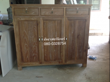 เฟอร์นิเจอร์ตู้เก็บของ3ลิ้นชัก3บานสีเสี้ยนขาวทำจากไม้สักเก่านำมาแปรรูปสวยทนทานคัดไม้ลายสวย ขนาด150*60*130(ยาว,ลึก,สูง)