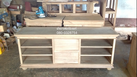 เฟอร์นิเจอร์ตู้วางทีวีขาซาลาเปา แบบชั้นไม้มีหน้าบาน ขนาด150x40x65(กว้าง,ลึก,สูง) ทำจากไม้สักเก่านำมาแปรรูป คัดไม้ลายสวย แข็งเเรงทนทาน