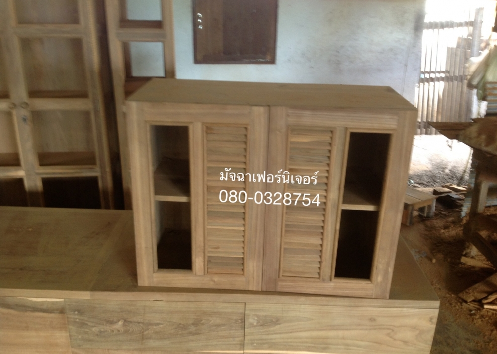 เฟอร์นิเจอร์ตู้ลอยไม้สัก 2 บานเปิด สลับบานเกล็ด ขนาด80x35x80