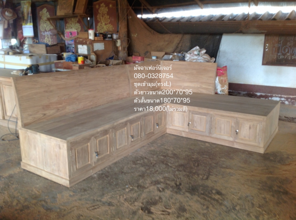 เฟอร์นิเจอร์ชุดรับแขก ชุดเข้ามุม(ทรงL)ตัวยาวขนาด200x70x95 ตัวสั้นขนาด180x70x95 ทำจากไม้สักเก่าแปรรูปไม้เก่ารายสวยแข็งแรงทนทานรับประกันจากโรงงาน