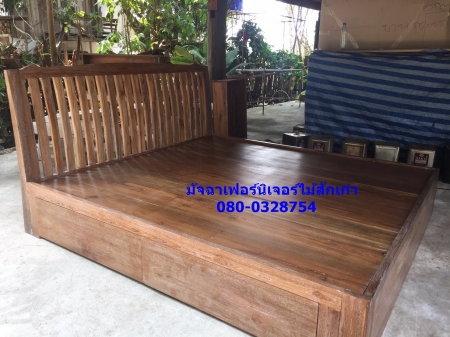 เฟอร์นิเจอร์เตียงนอน ขนาด6ฟุต ทำจากไม้สักเก่า หัวเตียงแบบชี้โคร้งนิดๆ เตียงถอดประกอบได้