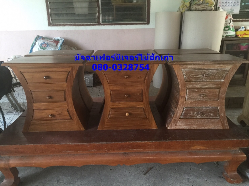 เฟอร์นิเจอร์ตู้หัวเตียงทำจากไม้สักเก่านำมาแปรรูป ขนาด60x35x60 (ยาว,ลึก,สูง)