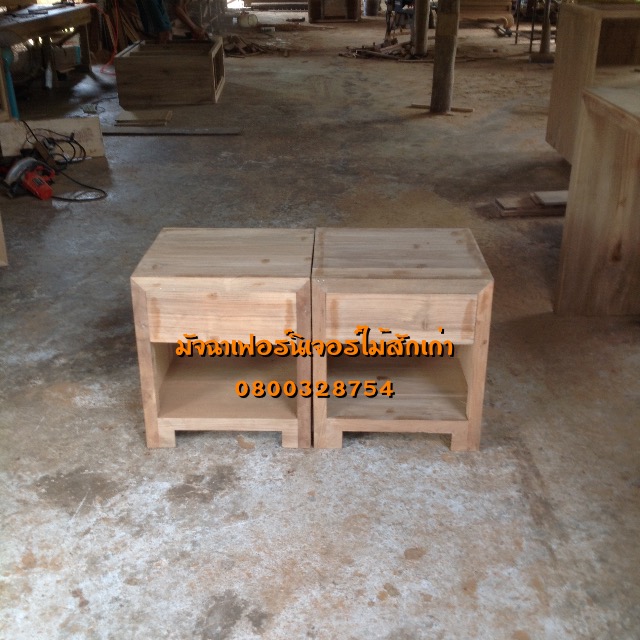 เฟอร์นิเจอร์ตู้หัวเตียง 1ลิ้นชัก ด้านล่างมีช่องโล่ง ขนาดมาตราฐาน ทำจากไม้สักเก่าแปรรูปไม้เก่ารายแข็งแรงทนทานรับประกันจากโรงงาน