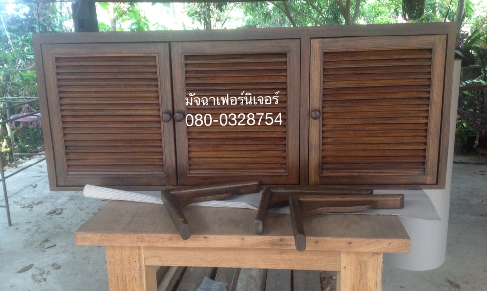 เฟอร์นิเจอร์ตู้ครัวบน(ตู้ลอย)บานเกล็ด3บานเปิดทำจากไม้สักเก่านำมาแปรรูป