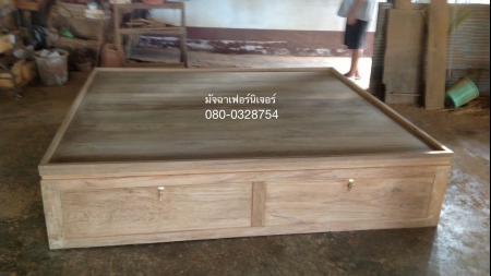 เฟอร์นิเจอร์เฟอร์นิเจอร์เตียง6ฟุตไม่มีหัวท้ายแบบเรียบ 2ลิ้นชัก มีช่องเก็บของด้านล่างทำจากไม้สักเก่าแปรรูปไม้เก่ารายแข็งแรงทนทานรับประกันจากโรงงาน
