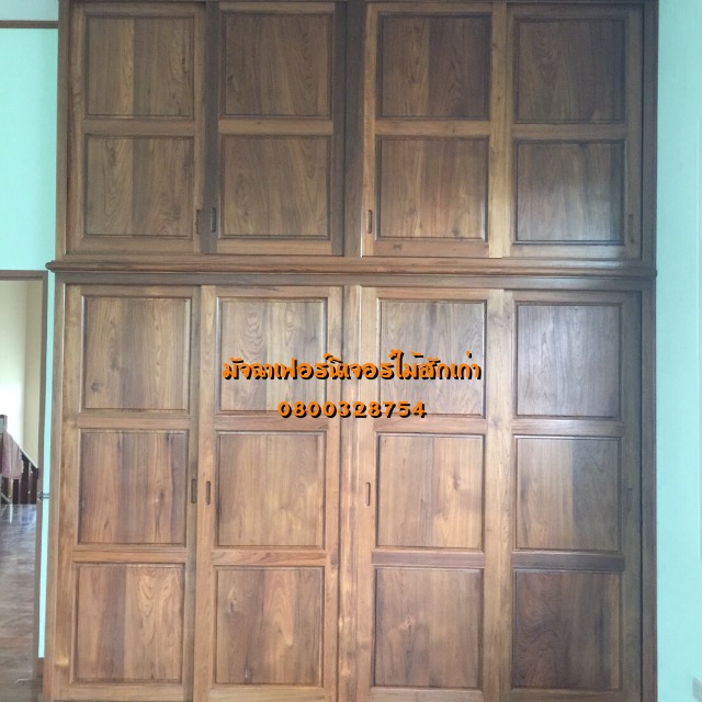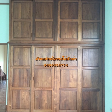 เฟอร์นิเจอร์ตู้เสื้อผ้าบานสไลท์แบบฟักแยกได้2ท่อนทำจากไม้สักเก่านำมาแปรรูปขนาด ขนาด 200x60x300(ยาว,ลึก,สูง)