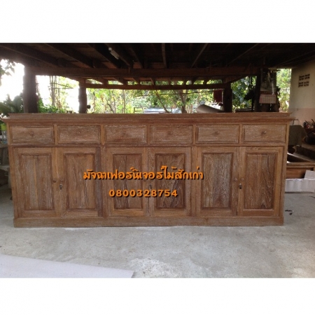 เฟอร์นิเจอร์ตู้โชว์แยกได้2ท่อนๆล่างทึบท่อนบนเป็นกระจกทำจากไม้สักเก่านำมาแปรรูป ขนาด 200x50x200(ยาว,ลึก,สูง)