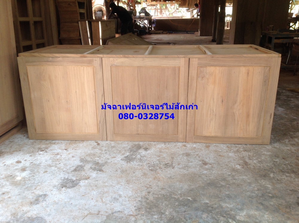 เฟอร์นิเจอร์ตู้บาร์ห้องครัวไม่มีน่าท็อปโชว์สองด้าน (ลุกค้าไปวางหินอ่อนน่าท็อปเอง)ทำจากไม้สักเก่านำมาแปรรูป ขนาด 200x80x90 (ยาว.ลึก.สูง)