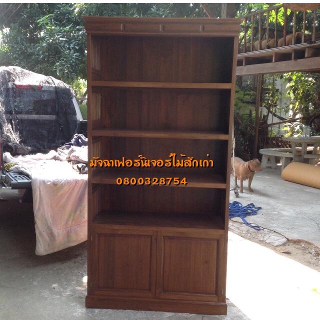 เฟอร์นิเจอร์ตู้หนังสือข้างชี้ขนาด100x40x200 ล่าง2บานเปิดทำจากไม้สักเก่าแปรรูป