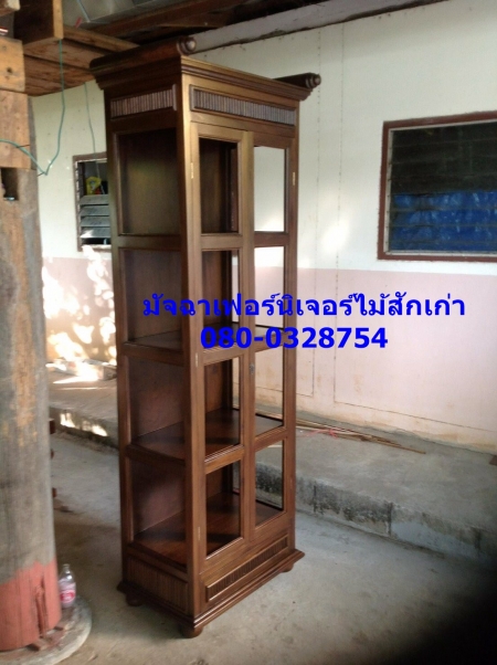 เฟอร์นิเจอร์ตู้โชว์ 2บานเปิดกระจก ขาชาลาเปามีชั้น4ชั้นบนท็อบ ช้าย,ขวา