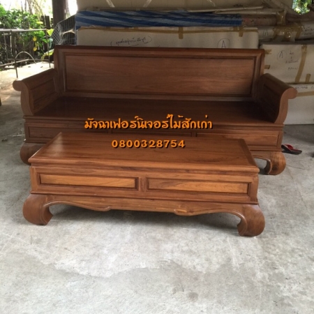 เฟอร์นิเจอร์แหย่ง ขาคู้ 3ลิ้นชักพนักพิงแบบฟักขนาด180x80x40 ทำจากไม้สักเก่าแปรรูป คัดลายไม้สวย