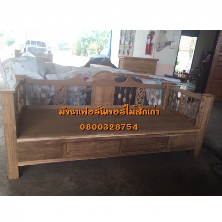 เฟอร์นิเจอร์แหย่งขาตรง3ลิ้นชักขนาด180x80x40 ทำจากไม้สักเก่าแปรรูปคัดลายไม้สวย แข็งแรงทนทาน