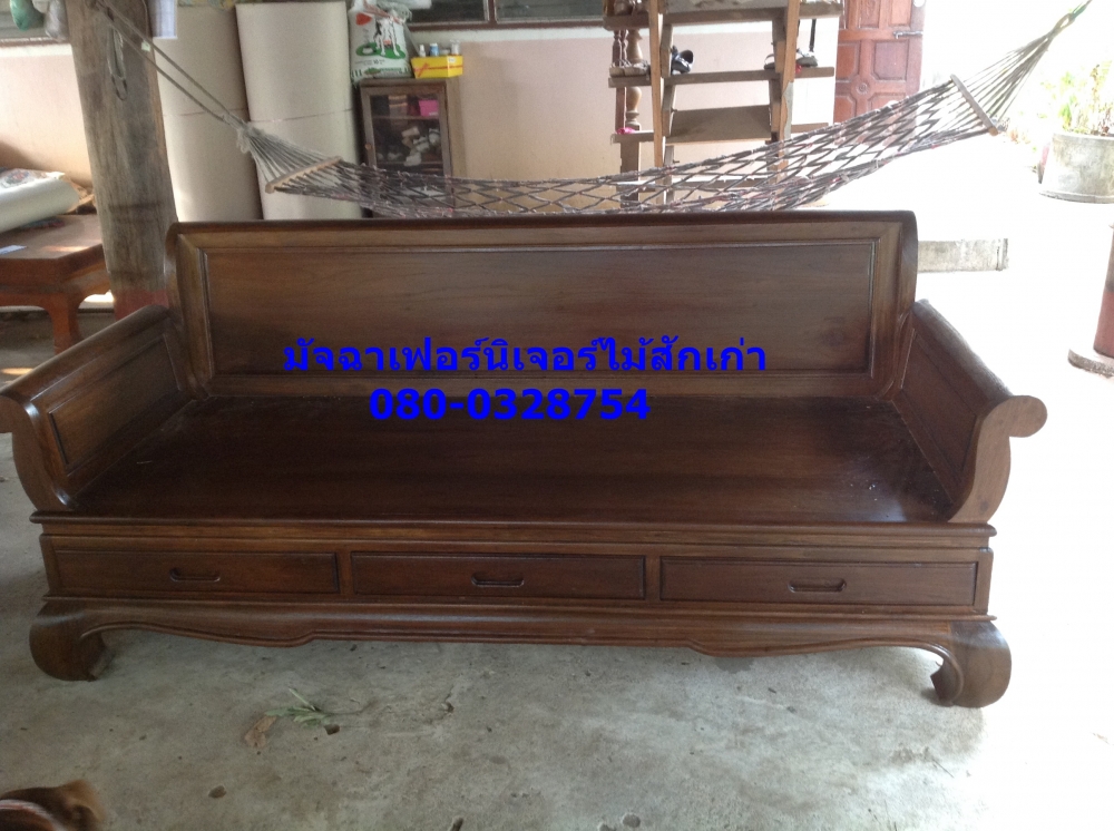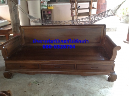 เฟอร์นิเจอร์แหย่งขาคู้3ลิ้นชักมือดึงเจาะในตัวขนาด190x80x40 ทำจากไม้สักเก่าแปรรูป