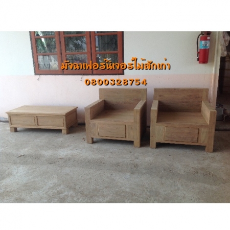 เฟอร์นิเจอร์เก้าอี้ ขาตรง แบบกล่อง เรียบ มี1ลิ้นชักทำจากไม้สักเก่าแปรนรูป