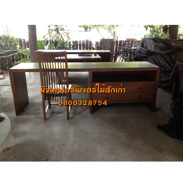 เฟอร์นิเจอร์โต๊ะทำงาน4ลิ้นชักแบบเรียบไม้ประกบทำจากไม้สักเก่านำมาแปรรูป