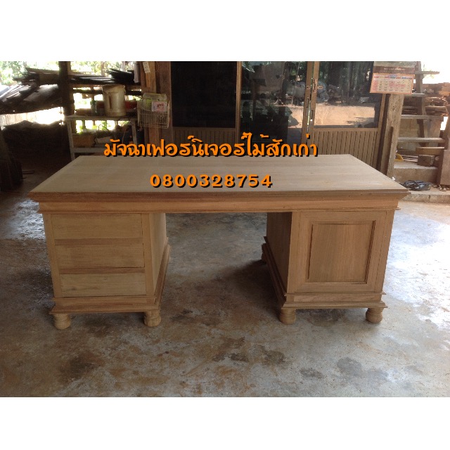 เฟอร์นิเจอร์โต๊ะทำงานไม้สัก(ขาชาลาเปา)3ลิ้นชัก 1บานเปิดแบบฟักทำจากไม้สักเก่านำมาแปรรูป สนใจติดต่อ ออ โทร080-0328754