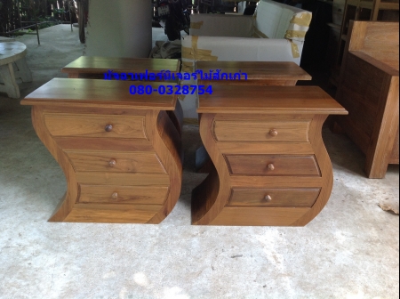 เฟอร์นิเจอร์ตู้ข้างเตียง ทรงS 3 ลิ้นชัก ขนาด60x35x60 ทำจากไม้สักเก่านำมาแปรรูป