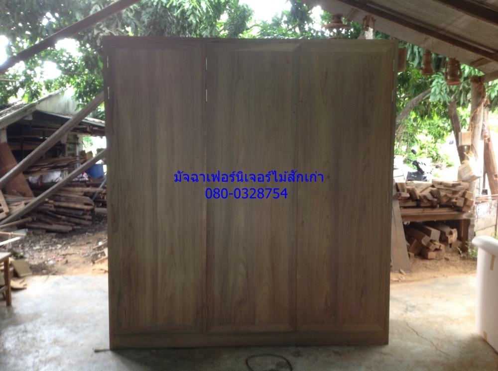 เฟอร์นิเจอร์ตู้เสื้อผ้าบานเปิดแบบเรียบทำจากไม้สักเก่านำมาแปรรูปสั่งทำสีได้ตามต้องการรายไม้สวยแข็งแรงทนทาน