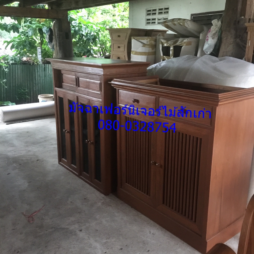 เฟอร์นิเจอร์ต็เก็บของทำจากไม้สัก 2 ท่อน ท่อนล่างเป็นตู้เก็บรองเท้า2ชัก2บานเปิดติดมุ่งลวด