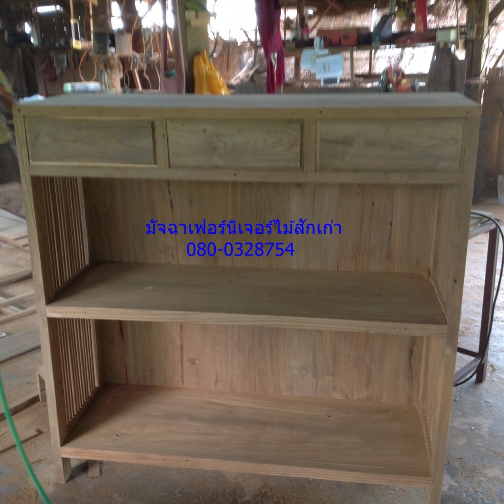 เฟอร์นิเจอร์ตู้หนังสือข้างชี้2ช่อง3ลิ้นชักทำจากไม้สักเก่าสนใจติดต่อได้ค่ะ