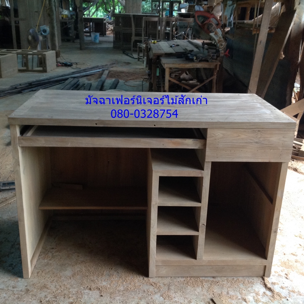 เฟอร์นิเจอร์โต๊ะคอมแบบเรียบทำจากไม้สักเก่านำมาแปรรูปสนใจติดต่อสอบถามได้ที่ ออ โทร 080-0328754
