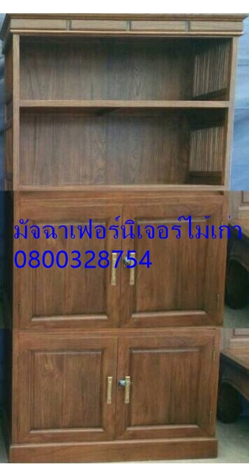 เฟอร์นิเจอร์ตู้หนังสือไม้สัก2ช่องโล่งข้างชี้ล่าง4บานเก็บของเก็บหนังสือได้ทำจากไม้สักเก่าสนใจติดต่อ ออ โทร 0800328754