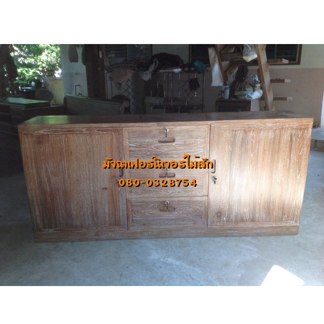 เฟอร์นิเจอร์ตู้วางทีวี3ลิ้นชัก2บานเปิดแบบเรียบทำจากไม้สักเก่านำมาแปรรูปสวยทนทานคัดไม้ลายสวย ขนาด 200*40*90(ยาว,ลึก,สูง)
